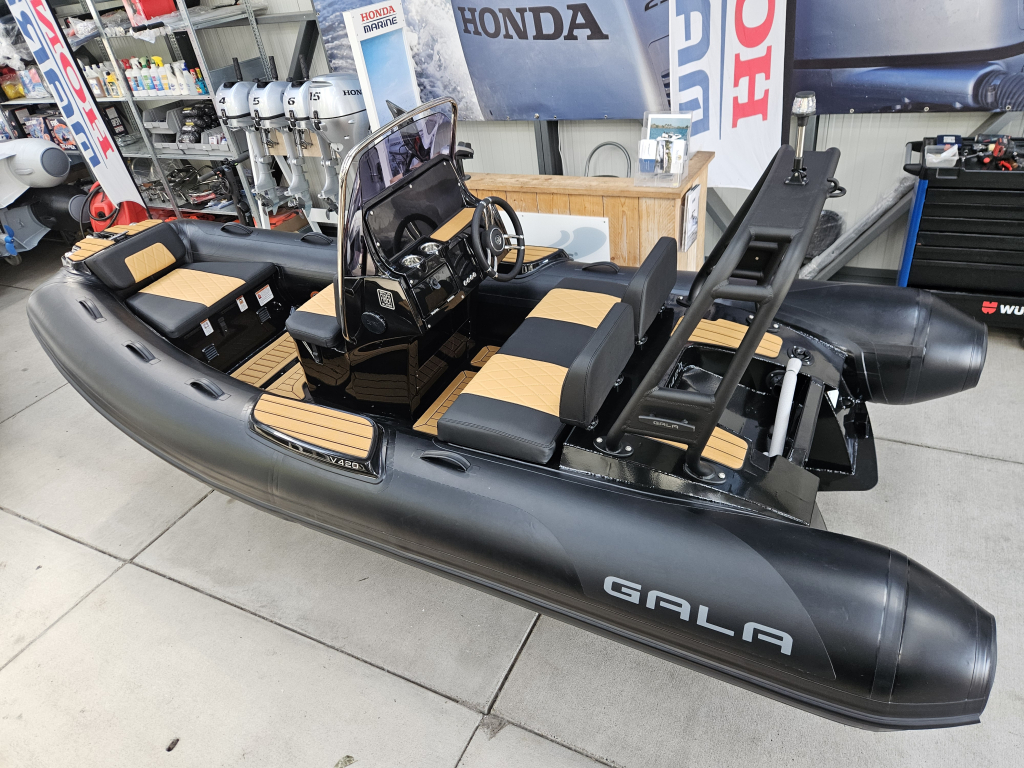 Nu op voorraad en binnenkort meer foto,s , deze mooie Gala V 420 in een hele mooie kleurstelling met bijna alle denkbare luxe opties en een krachtige Honda BF60 LRTU. De boot is voorzien van :