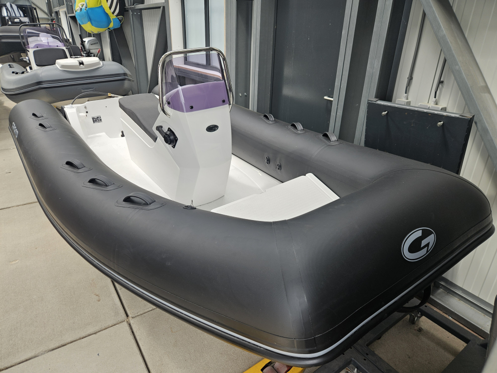 NIEUWE DEMO Grand Silverline 470 Sport, nieuwe demo 2025 rib met jockeyseat. De boot is zonder motor.Nu voor € 6.999,- (vaste prijs)