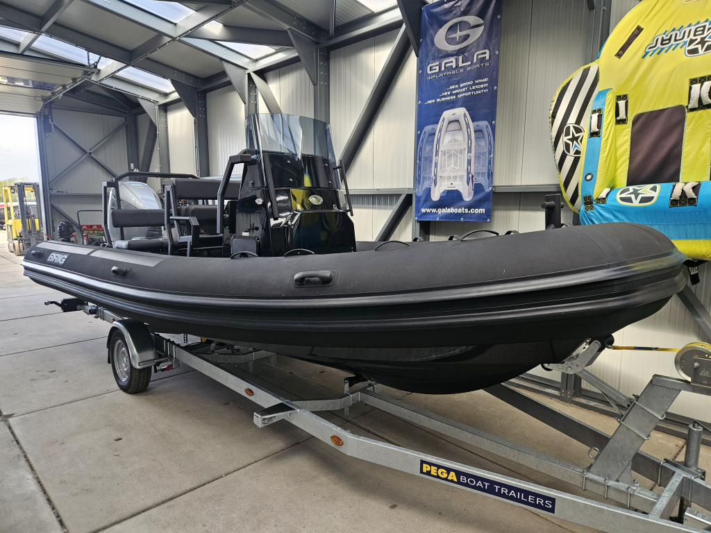 Zeer mooie Gala V580 met zwarte PVC tube incl. een Honda BF100 LRTU met slecht 195 draaiuren en een geremde Pega V-Liner 1350 kg trailer met centreerset, loopplank
