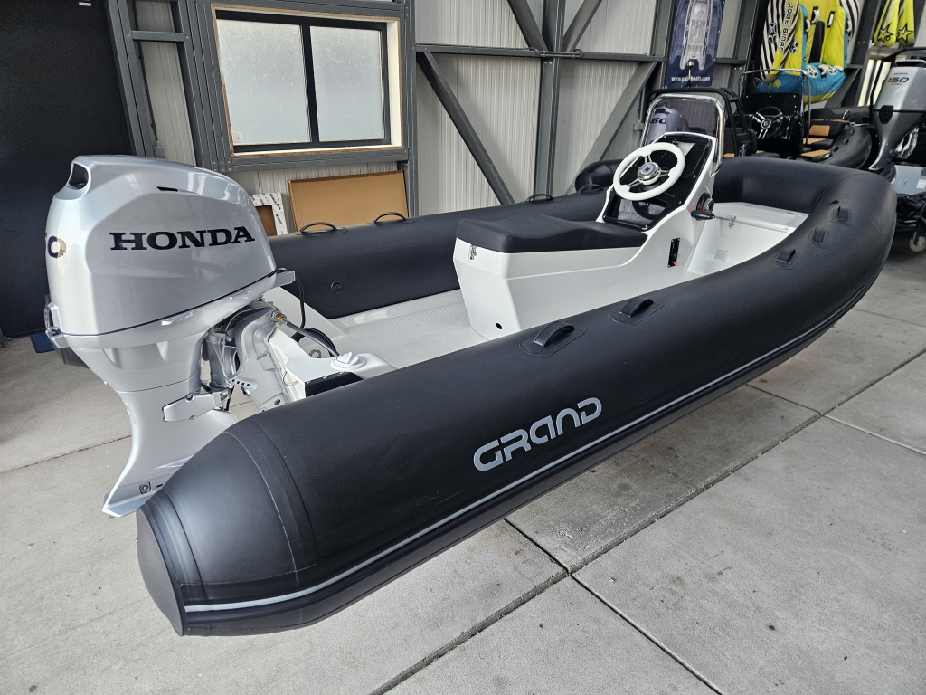 NIEUWE DEMO Grand Silverline 470 Sport, nieuwe demo 2025 rib met jockeyseat. De boot is incl. een Honda BF50 LRTU (0 draaiuren) met luxe inbouwschakelkast en toerenteller